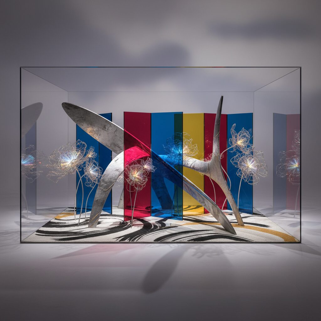 Sadamasa Motonaga took a more lyrical, almost magical approach. For his ‘Work (Water)’ (1956), he filled long, transparent vinyl tubes with colored water—red, blue, green, yellow—and hung them between the branches of the park’s pine trees. The effect was stunning. As the sun, their co-challenger, moved across the sky, its light shone through the colored water, casting shifting, vibrant shadows on the ground beneath. The wind gently swayed the tubes, like strange, futuristic fruit. Motonaga used the elements—light, water, wind, gravity—as collaborators. The work was never static; it constantly changed with the time of day and weather. It was a perfect example of Gutai’s goal to dissolve the line between the man-made and natural worlds.