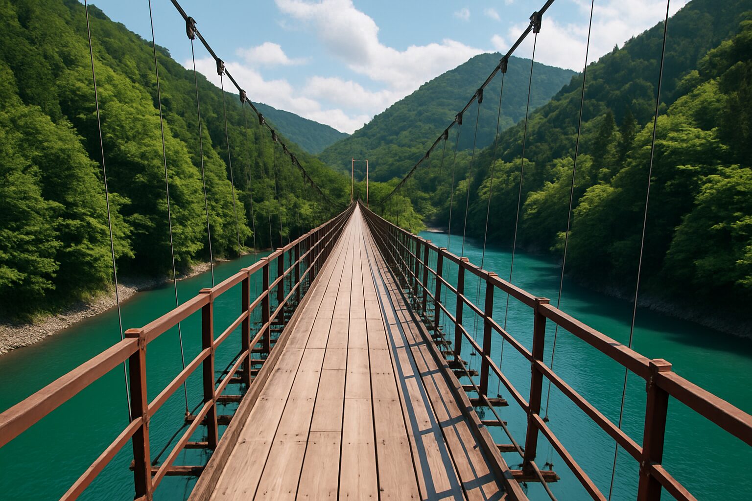 The sounds are something else, too. When the wind picks up, it whistles through the steel cables, creating a low, humming melody—the bridge’s own theme song. You hear the wood’s creak, faint echoes of voices from either end, and the rush of the river beneath. It’s a soundtrack of pure nature blended with human ingenuity. The best part is the middle. Right at the center, the sway is strongest, and the view is a perfect 360-degree panorama. This is the moment—you stop, take a deep breath, and absorb it all. I did a slow spin, trying to etch the image forever in my memory. Sunlight glimmering on the water, deep shadows stretching through the valleys, the sheer audacity of this man-made marvel amid wild beauty. It feels like floating. A moment of pure, unfiltered presence. The walk back feels different. You’re more assured, experienced. You begin to notice the small details, like how the wooden planks have been weathered by time and elements, or the sturdy bolts holding everything together. Reaching the other side and stepping onto solid ground is a strange sensation. The land feels oddly still after the bridge’s gentle motion. There’s a massive rush of accomplishment, like conquering a small personal Everest. And you immediately want to turn around and do it all over again.